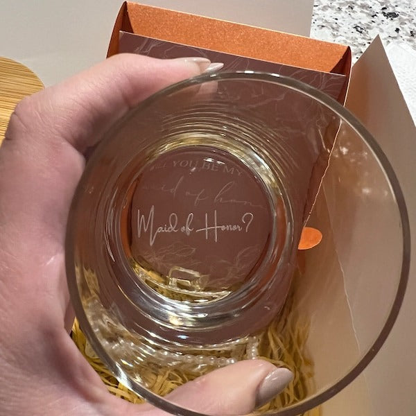 Our personalized wine glasses are thoughtfully laser engraved to turn meaningful moments into lasting keepsakes. Crafted from premium-quality glass, each piece offers timeless elegance and crystal-clear clarity, making every sip feel special. Whether celebrating a wedding, anniversary, or heartfelt milestone, these custom wine glasses are designed to be cherished for years to come.